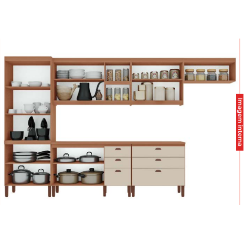 A Cozinha Completa Modulada Tuboarte Agata com 11 Portas e 6 Gavetas com acabamento Premium é a solução perfeita para aliar praticidade, modernidade e resistência a um visual charmoso, mantendo sua cozinha totalmente organizada! .