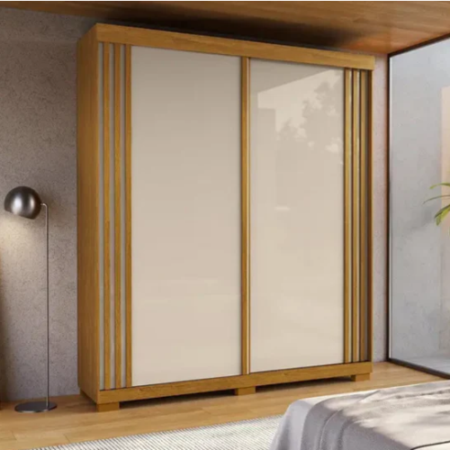 Guarda Roupa ACP Athena 2 Portas Slide com Espelho - Cinamomo/Off White